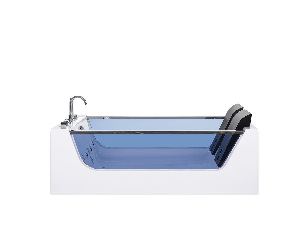 Вбудовані підводні світлодіодні ліхтарі та численні форсунки забезпечать незабутні враження. Завдяки синій прозорій скляній панелі вся ванна кімната буде освітлена сяючими барвистими відтінками, створюючи спокійну і глибоко розслаблюючу атмосферу.