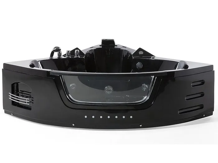 Відпочиньте після важкого дня в цій кутовій гідромасажній ванні з водоспадом. Комфортний відпочинок забезпечують зручні підголівники та велика ванна, а барвисті світлодіодні світильники допоможуть розслабитися. Виготовлений із чорного акрилу для довговічності та гарного вигляду.
