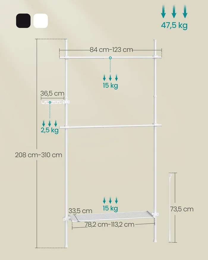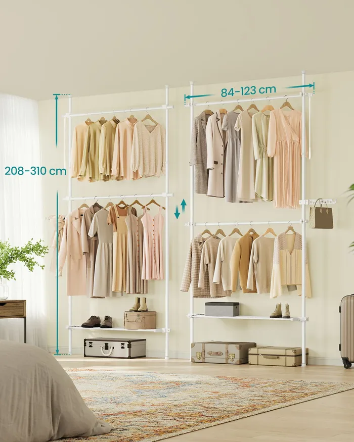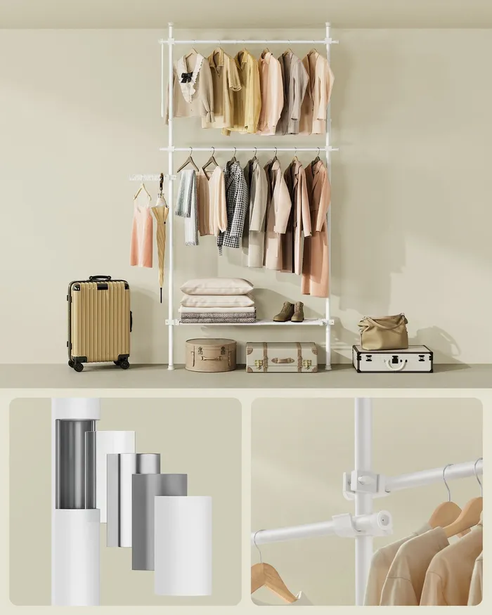 Телескопічний вішак для одягу білих 3 рівнів