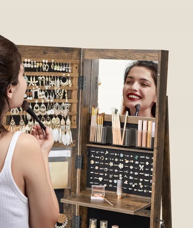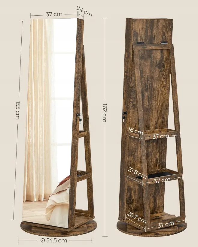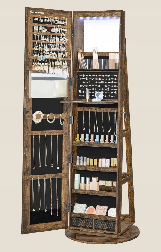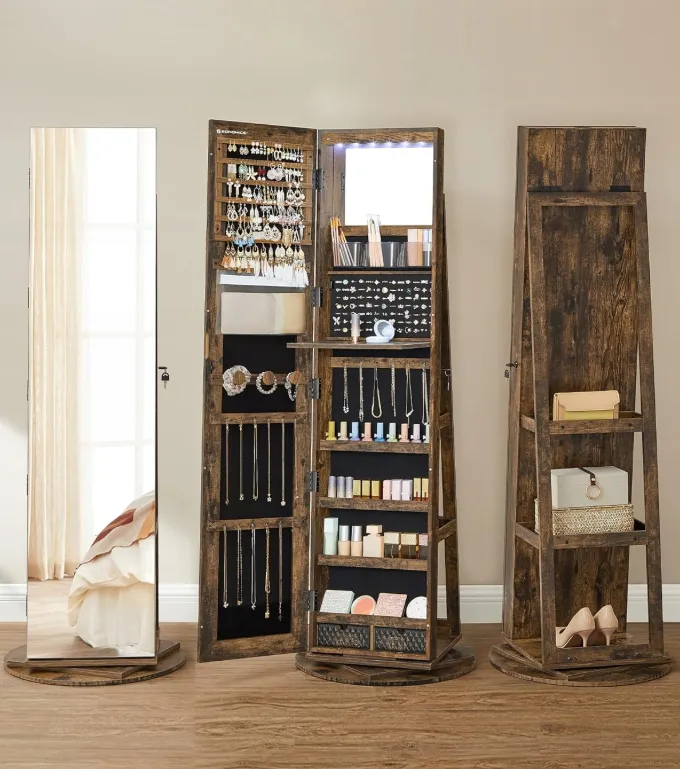 Елегантна та функціональна, ця обертова шафа для ювелірних виробів ідеально підійде для спальні, гардеробної, ванної кімнати або коридору.