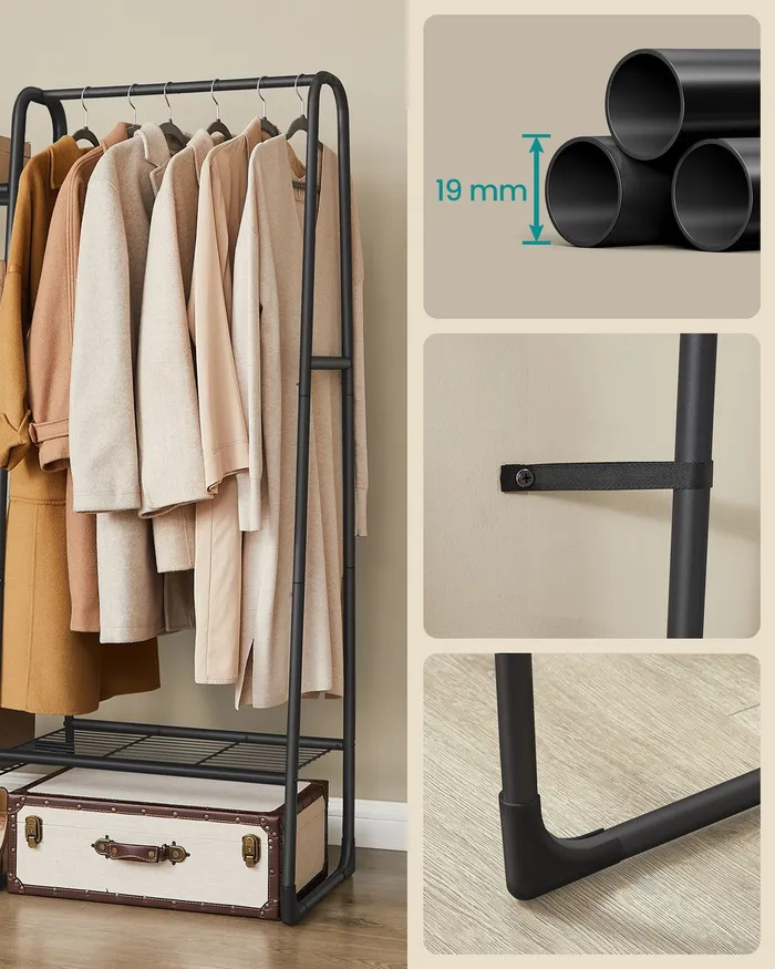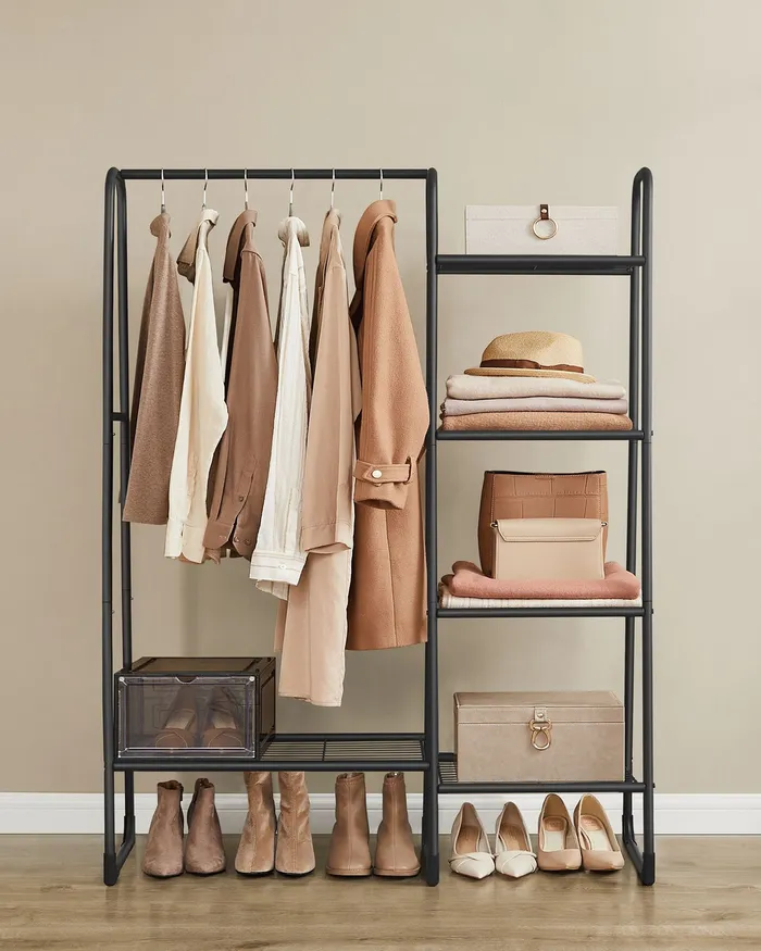 Відкрита чорна вішалка для одягу 5 полиць