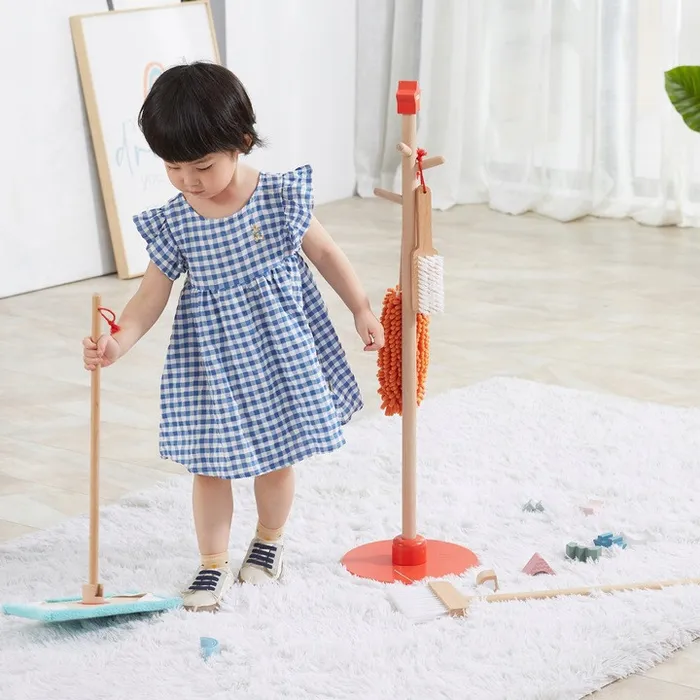 Діти зазвичай негативно асоціюють прибирання з рутинною роботою або нудним та стомлюючим заняттям. Набір для чищення є аксесуарами, спеціально розробленими для маленьких помічників як за розміром, так і за вагою. Предмети можна легко зберігати за допомогою підставки із червоною основою, на яку їх можна повісити. Завдяки набору для чищення ваша дитина навчиться користуватися окремими предметами. Ваш малюк навчиться утримувати свою кімнату в порядку та чистоті.