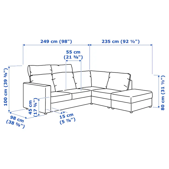 У серії диванів VIMLE є секції, які можна вільно об’єднувати в набори відповідно до ваших потреб і потреб вашого дому – і так само, як сім’ї та домівки ростуть, ви можете комплектувати диван, який буде рости разом з вами.