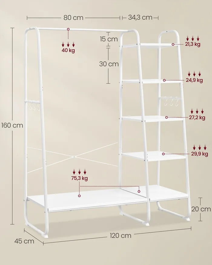 Вішак для одягу з 5 полицями білі