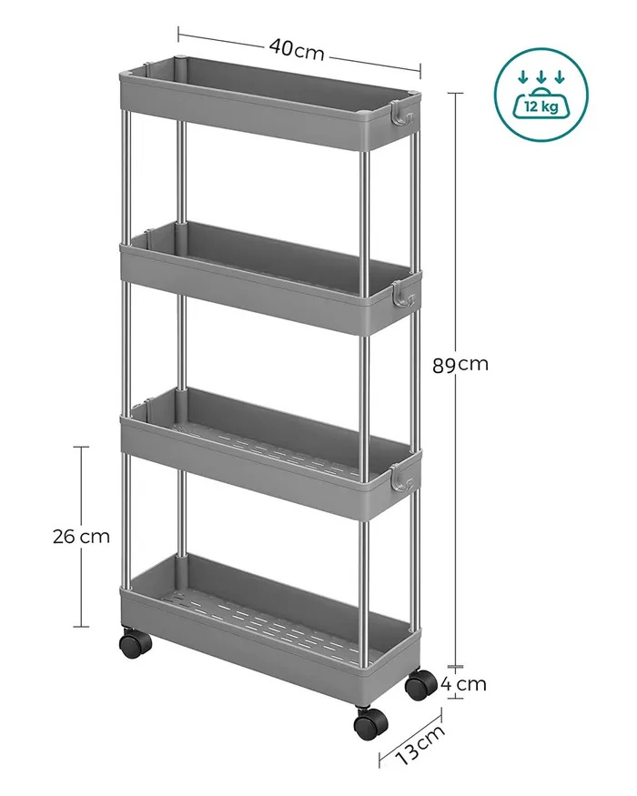 Візок на колесах із 4 рівнями сірого 86 см