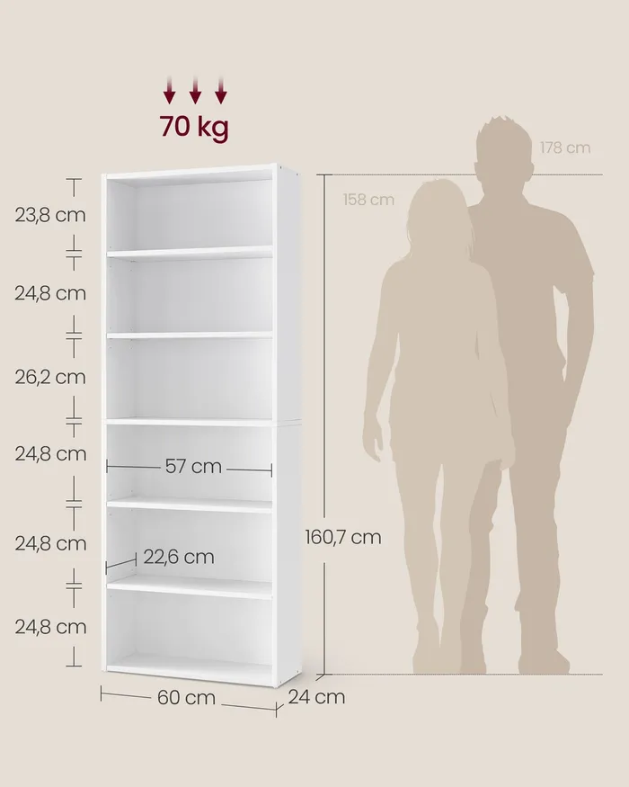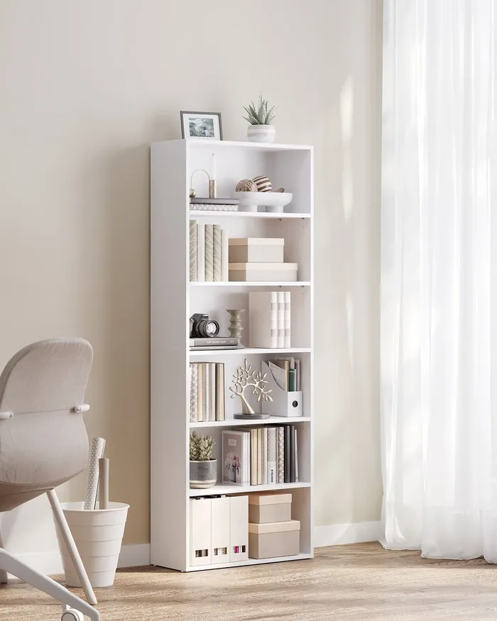 Вузька книжкова шафа 6 полиць білі 160,7 см
