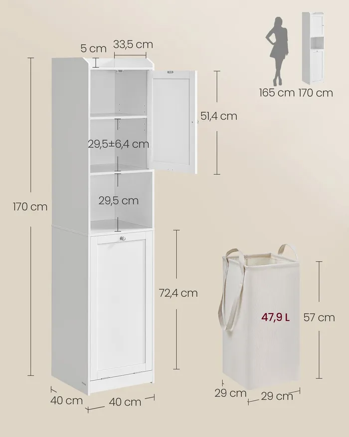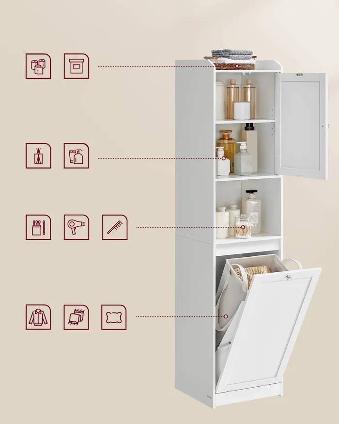 Вузька шафа для ванної кімнати з кошиком для пральні